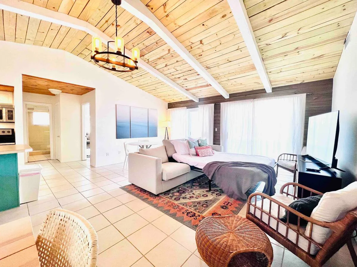April 2025So happy we found this place! The perfect getaway and close to the beach. Kitchen was above my expectations. Plenty of seating whether unwinding in front of the couch, eating or playing games at the long table. Two bedrooms have a balcony that is great for morning coffee. One thing I was concerned about was the comfort of the beds while having a bad back. Not the case here. The beds were so comfortable - even the queen bunk! My 6’ tall daughter was able to stretch and slept like a baby! We will definitely be back. I would highly recommend this place and any place they own as both Alejandro and Shaiffu were super attentive.